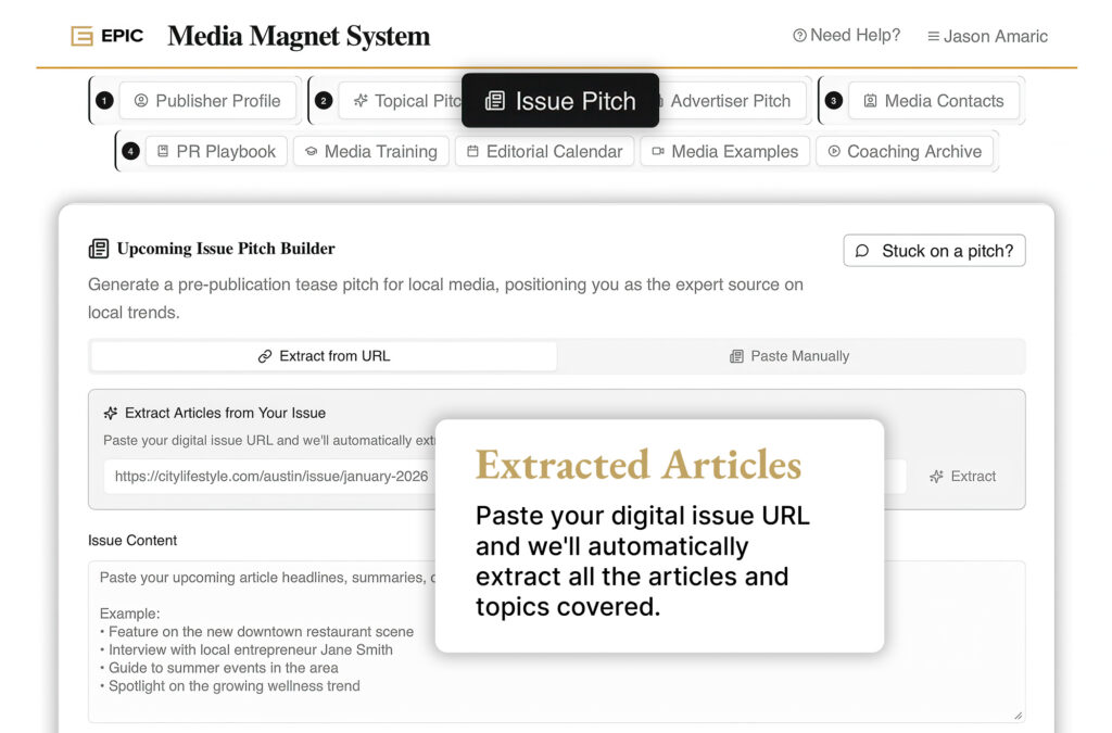 Publishers already have what most PR teams lack: access, relationships, community insight, and pattern recognition. Media Magnet turns that natural advantage into a repeatable workflow.